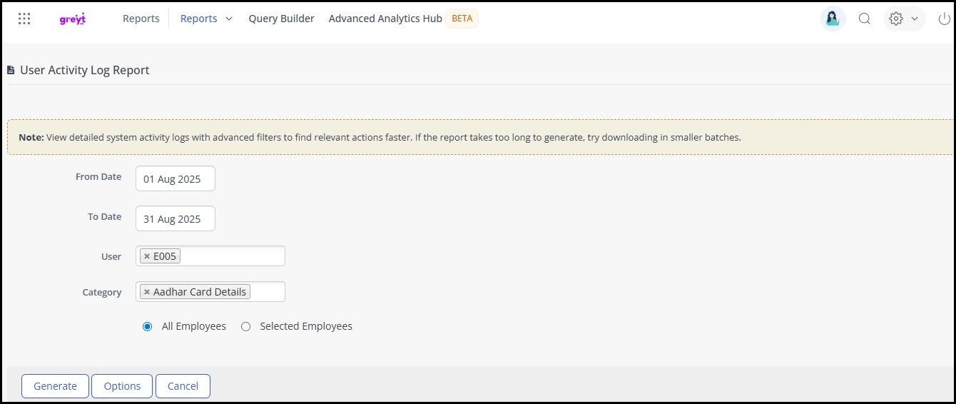 You can monitor user activities and maintain complete system transparency with the User Activity Log Report. It records key actions performed by users to ensure compliance, accountability, and data security.